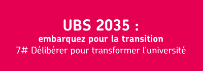 UBS 2035 : embarquez pour la transitionAvec la "Convention UBS en Transition", l'université s'engage activement en faveur du développement durable et de la responsabilité sociale, faisant de ces enjeux des priorités dans sa stratégie à l'horizon 2035.